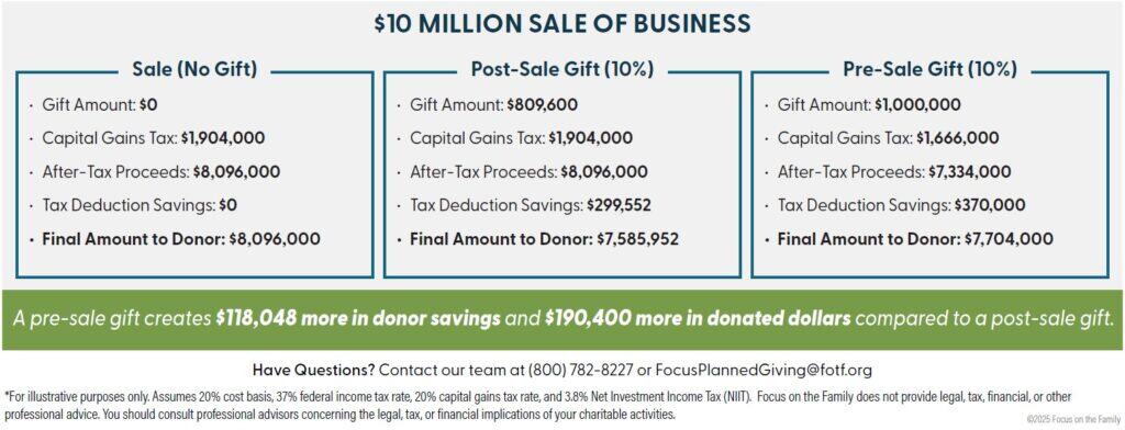 When a business is sold it may incur significant tax consequences. Giving a portion of your business ahead of the sale can result in a major tax benefit.